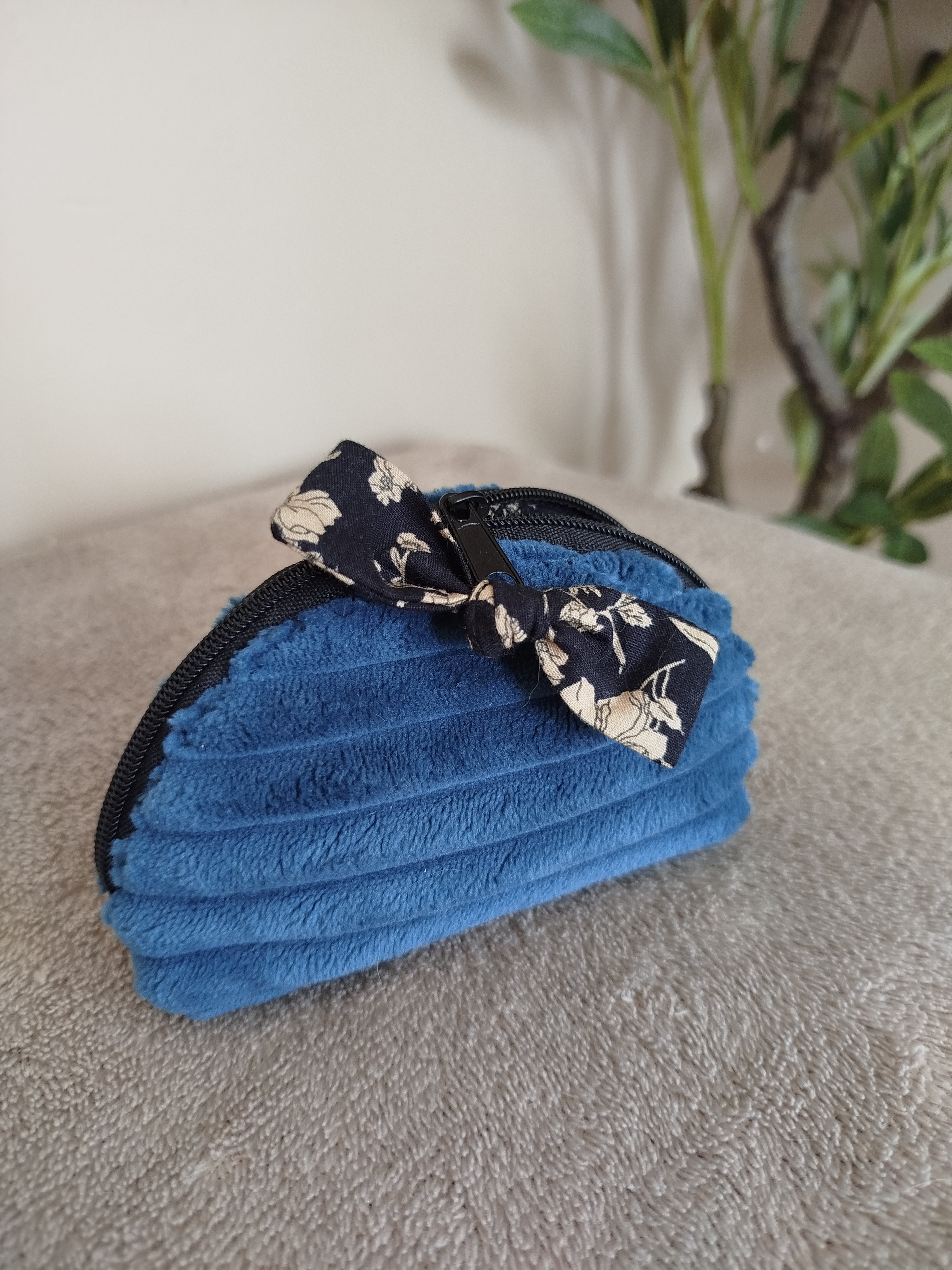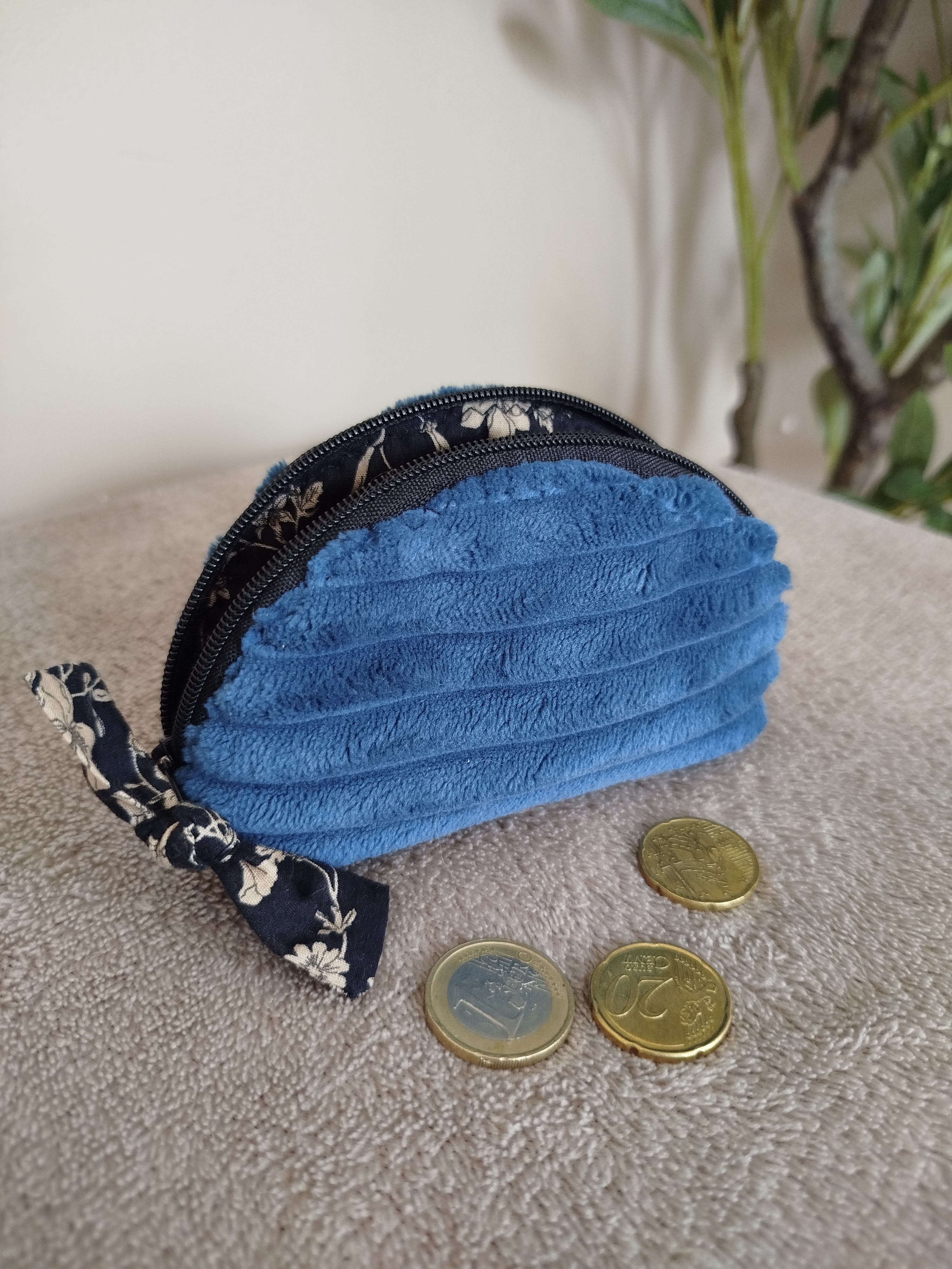 Bourse pour le rangement des pièces de monnaie / porte-monnaie en velours ultra doux "bleu canard".