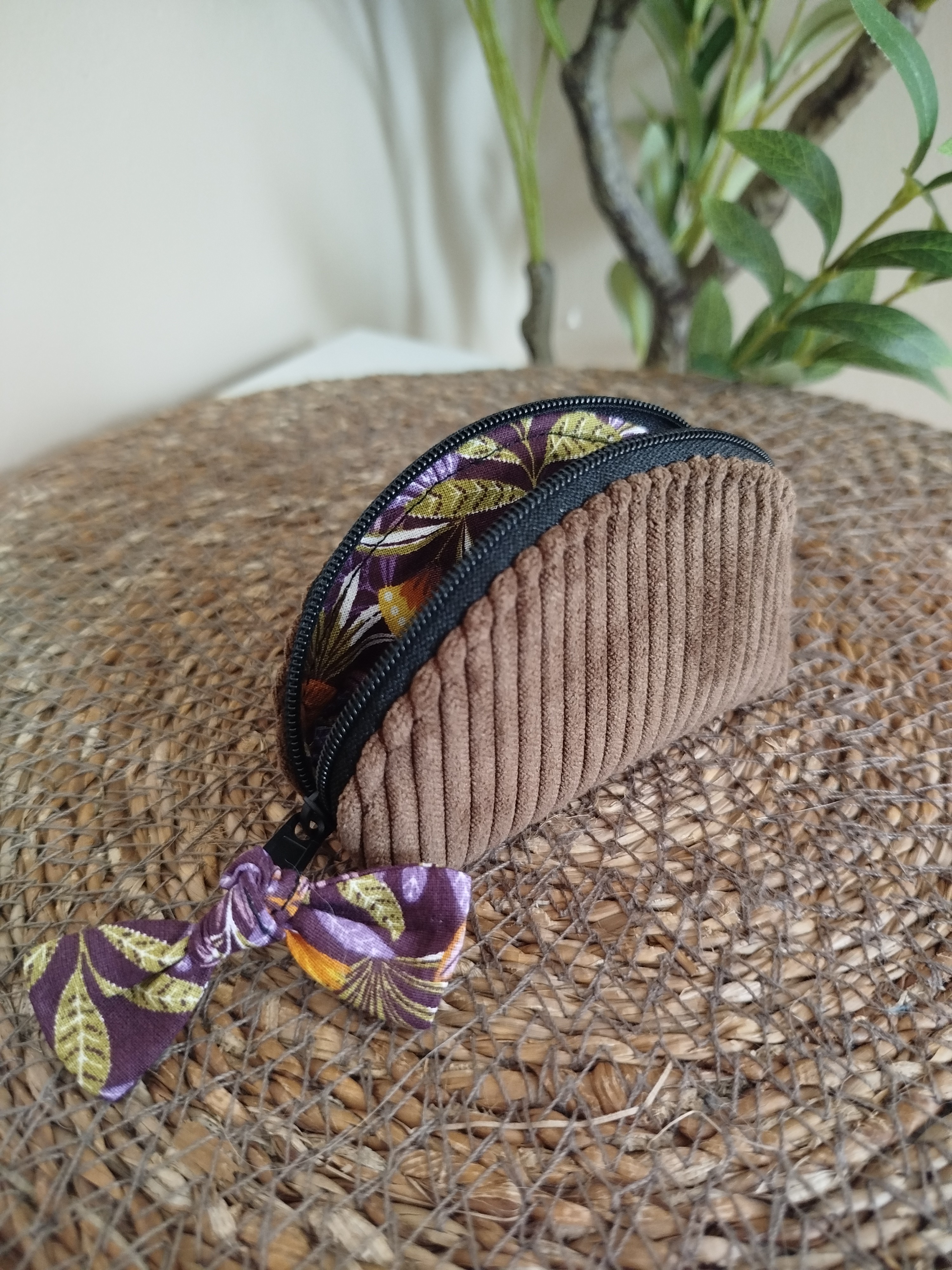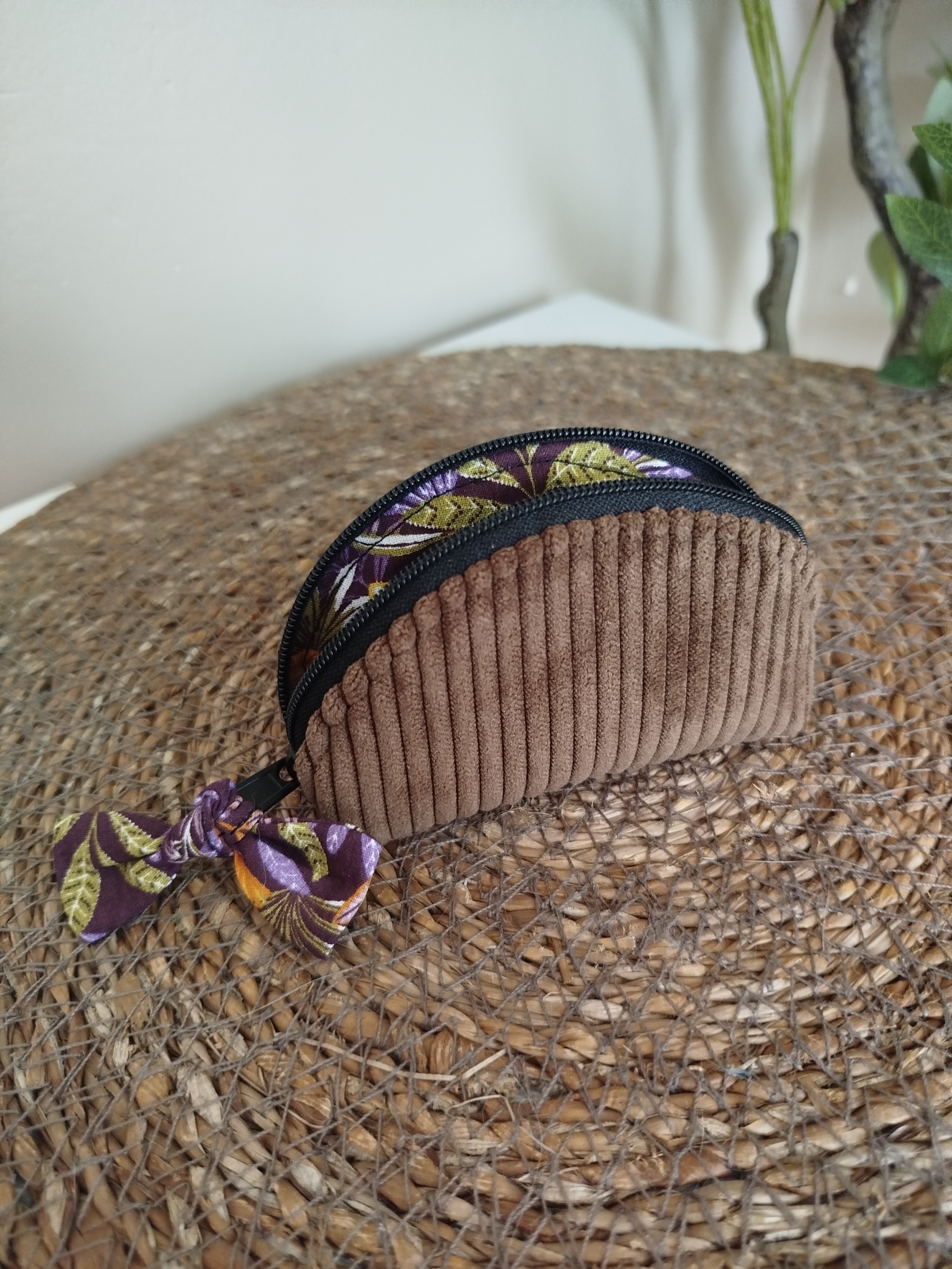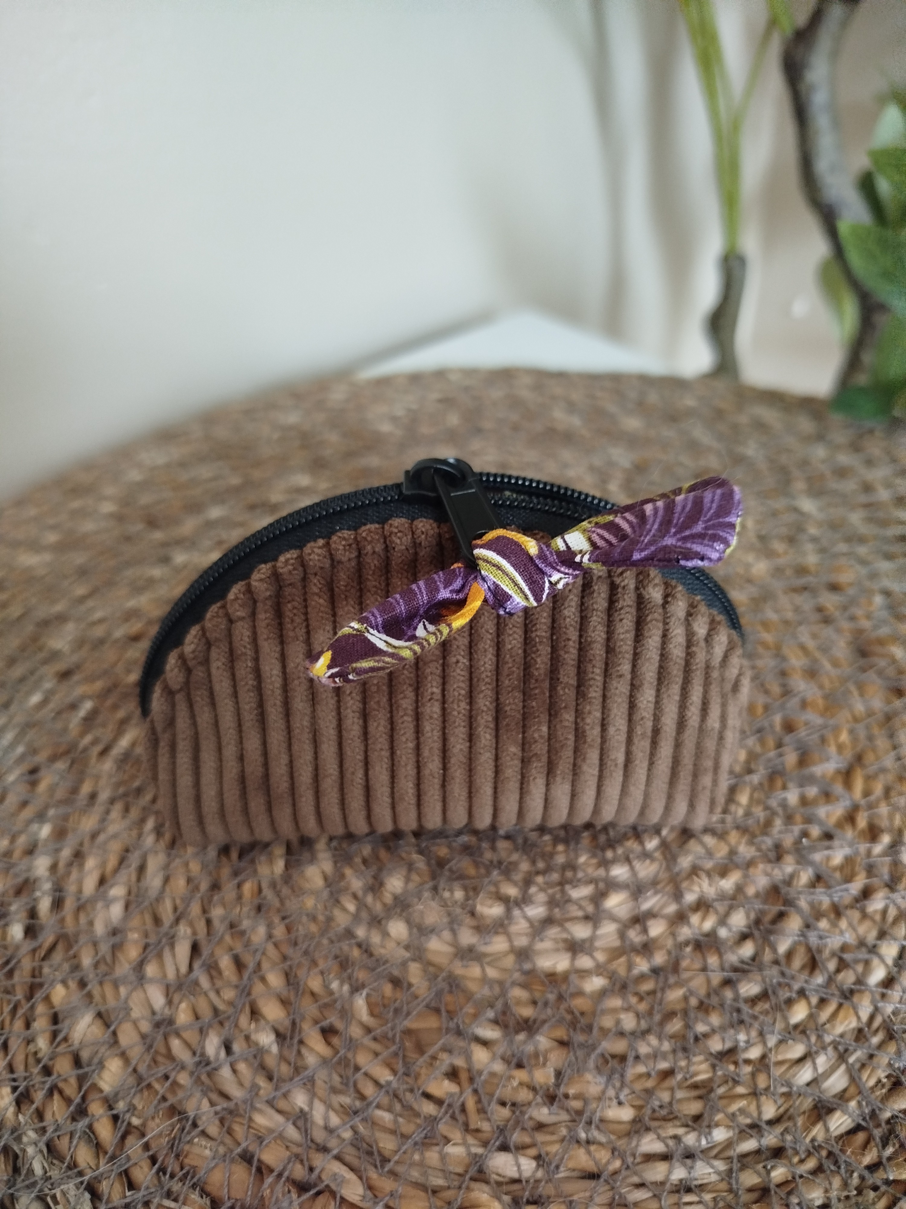 Bourse pour le rangement des pièces de monnaie / porte-monnaie en velours côtelé "marron chocolat".