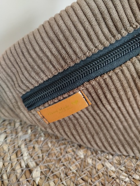 Cette banane est confectionnée dans un velours côtelé, issu de la nouvelle collection, elle est donc particulièrement tendance pour l'automne. Elle est entièrement doublée avec un coton style vintage dans les tons jaunes - Fermeture de couleur noire. Etiquette fantaisie sur la face avant du sac. La Bandoulière noire est réglable, selon l'utilisation souhaitée et peut être personnalisée, sur demande, selon votre morphologie.