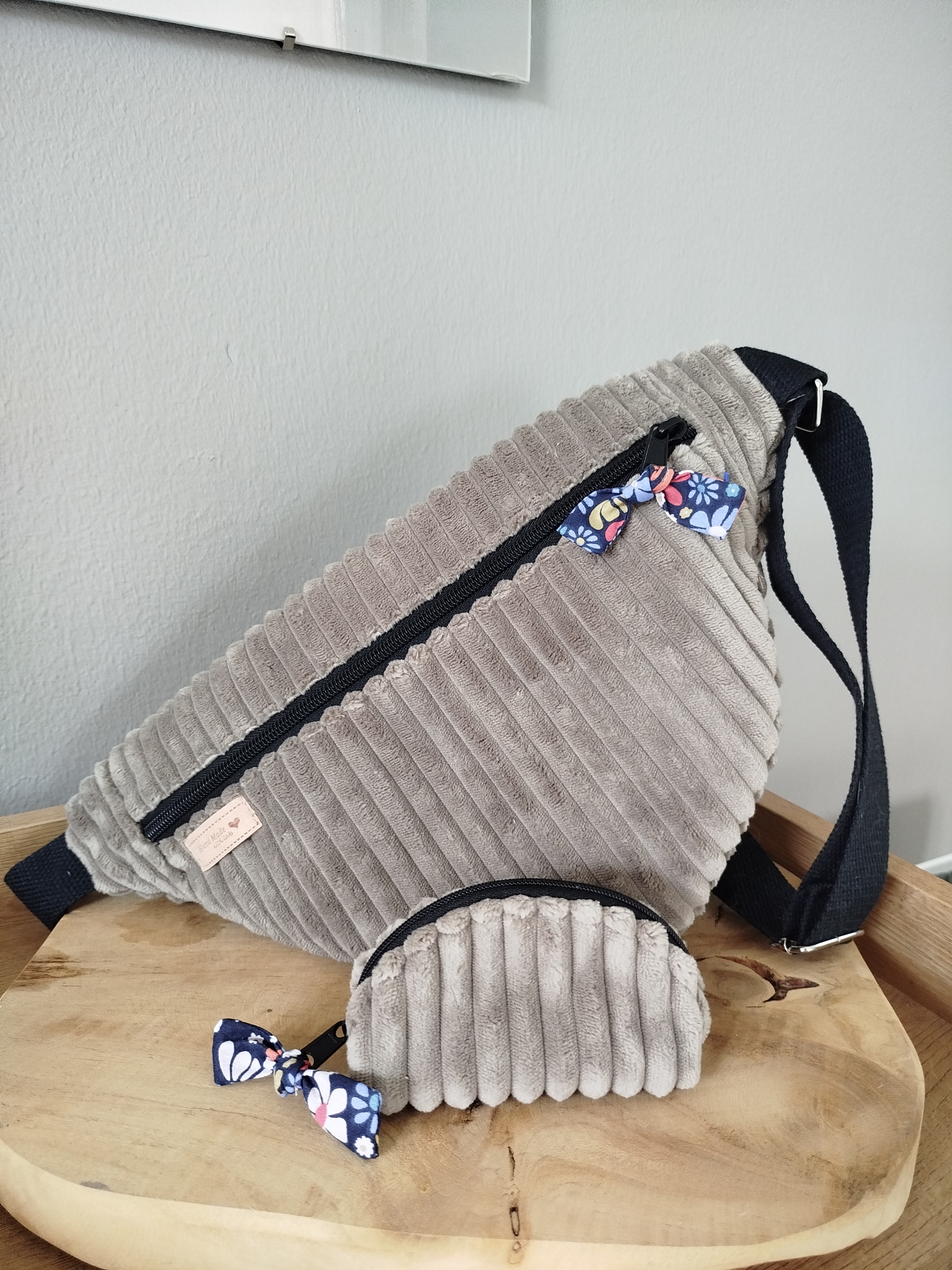 Très joli sac banane - bandoulière fait main, de couleur "gris taupe " accompagné de son porte-monnaie assorti (10 cm * 8 cm)
