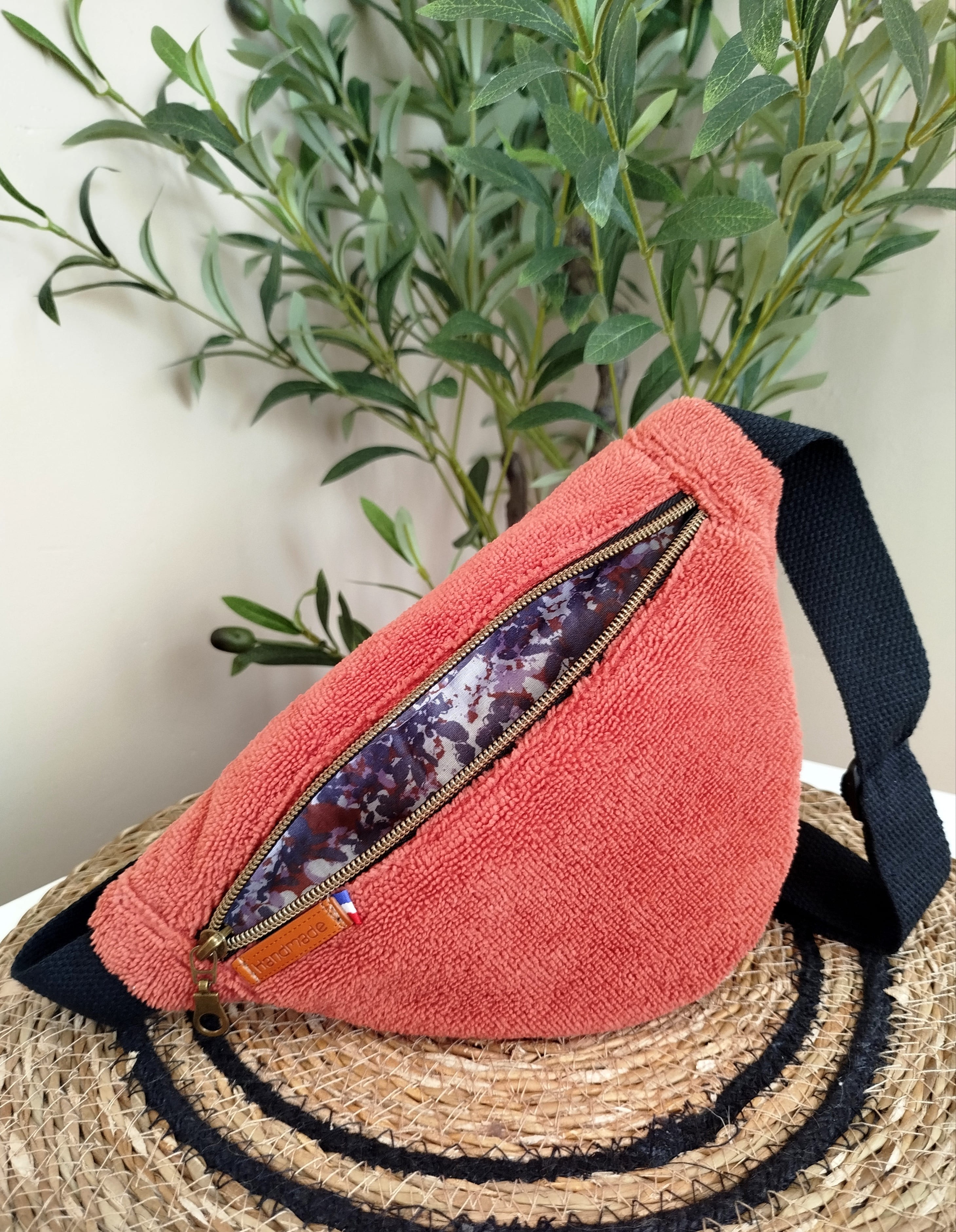 Je vous présente cette adorable petite sacoche, sac banane pour femme ou adolescent, 100% fait main, de couleur "terracotta ".