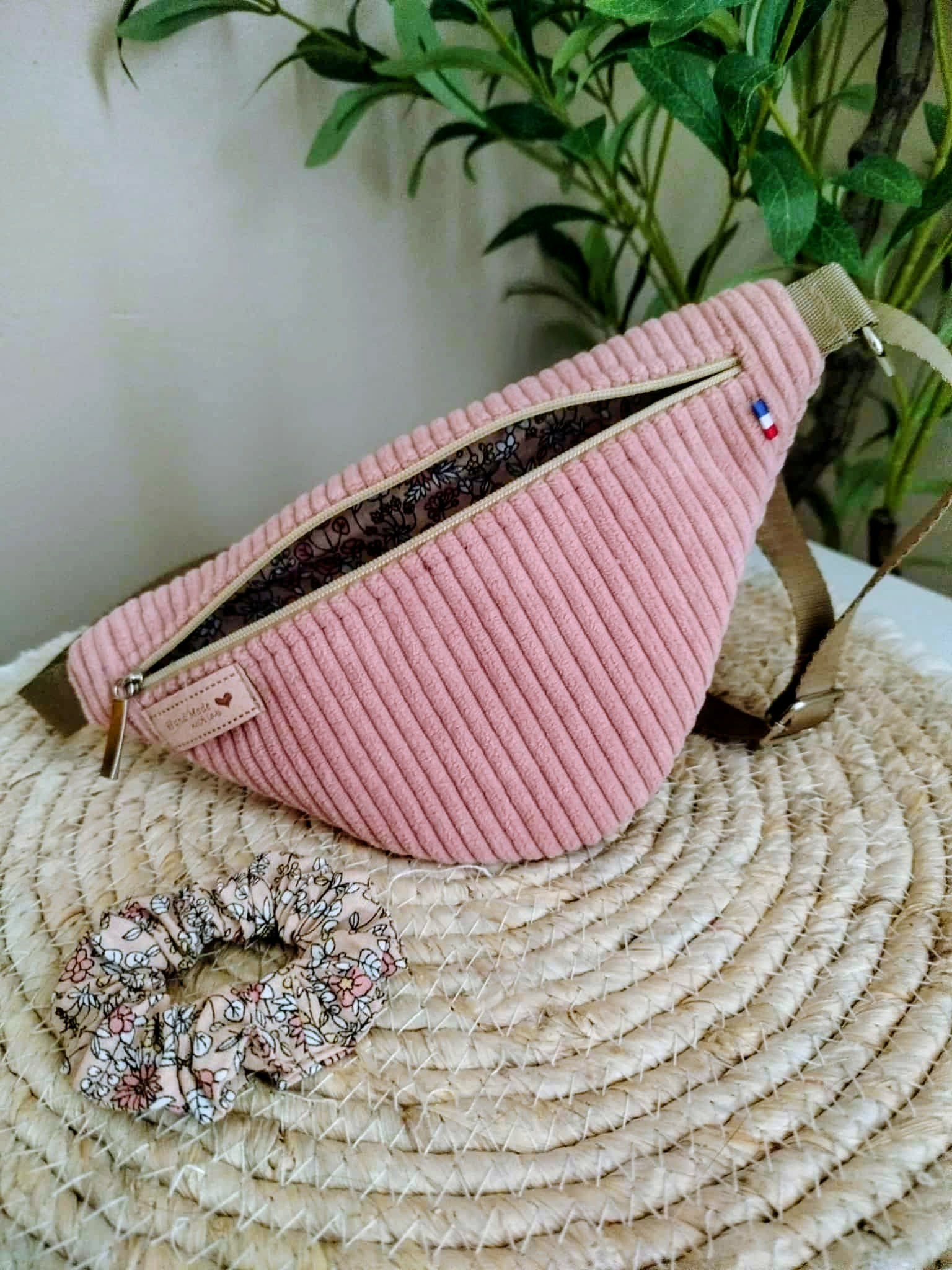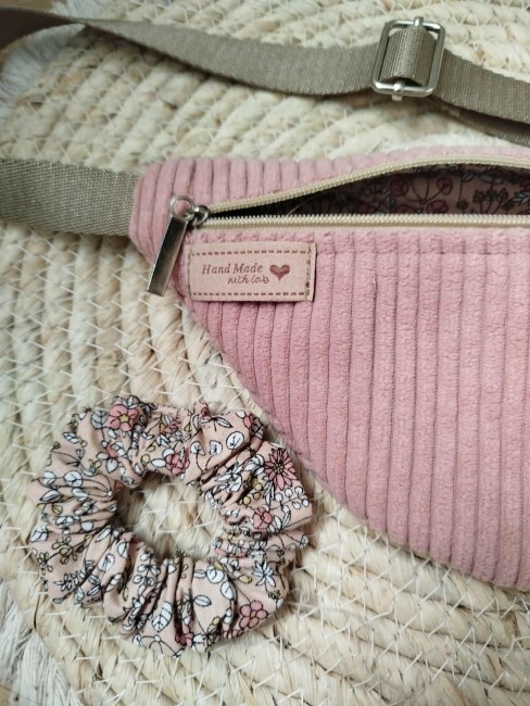 Ce joli sac banane pour enfant, fait main dans un velours côtelé rose poudré, apporte douceur, originalité et style au quotidien.