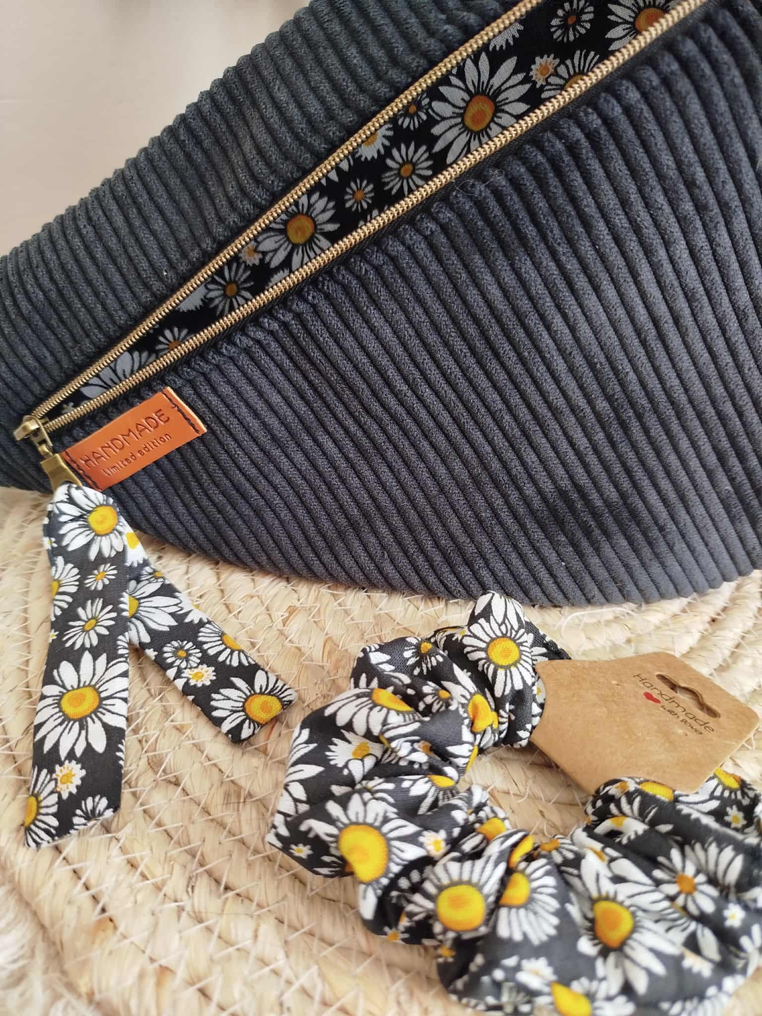 Le chouchou est confectionné dans un sublime coton fleuri, assorti à la doublure du sac.