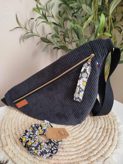 Ce sac banane grand modèle est réalisé à la main dans un velours côtelé noir, issu de la nouvelle collection.
