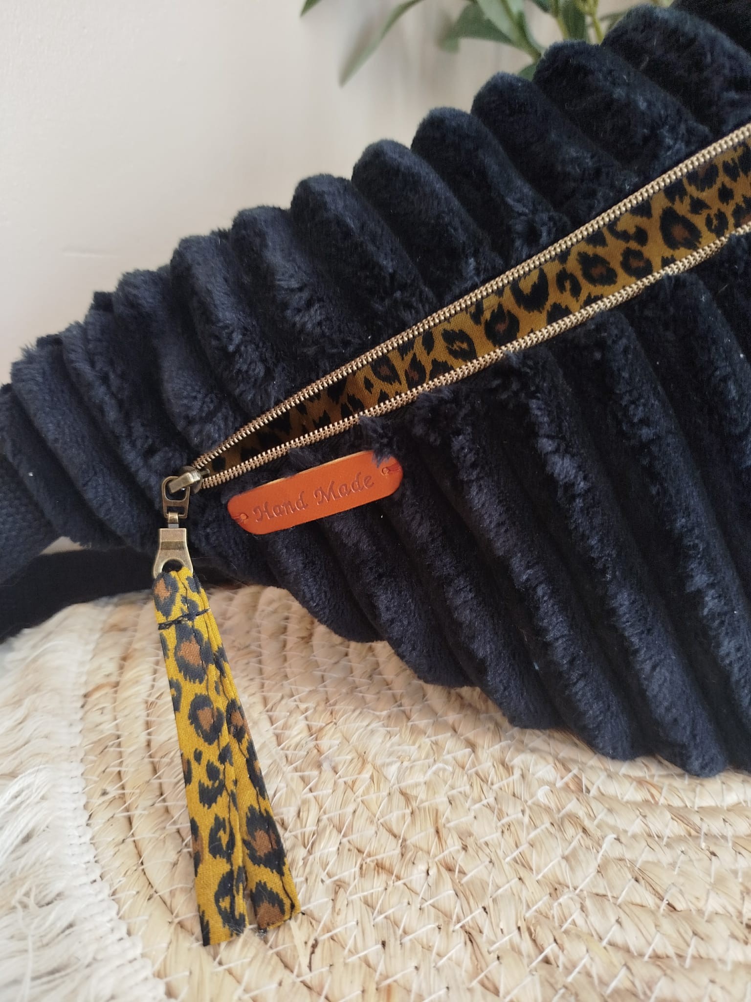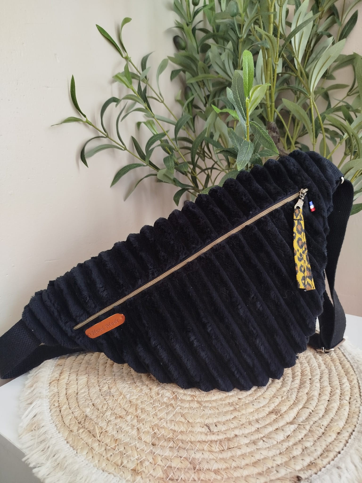 Sac banane noir en velours – Grand modèle artisanal, made in France