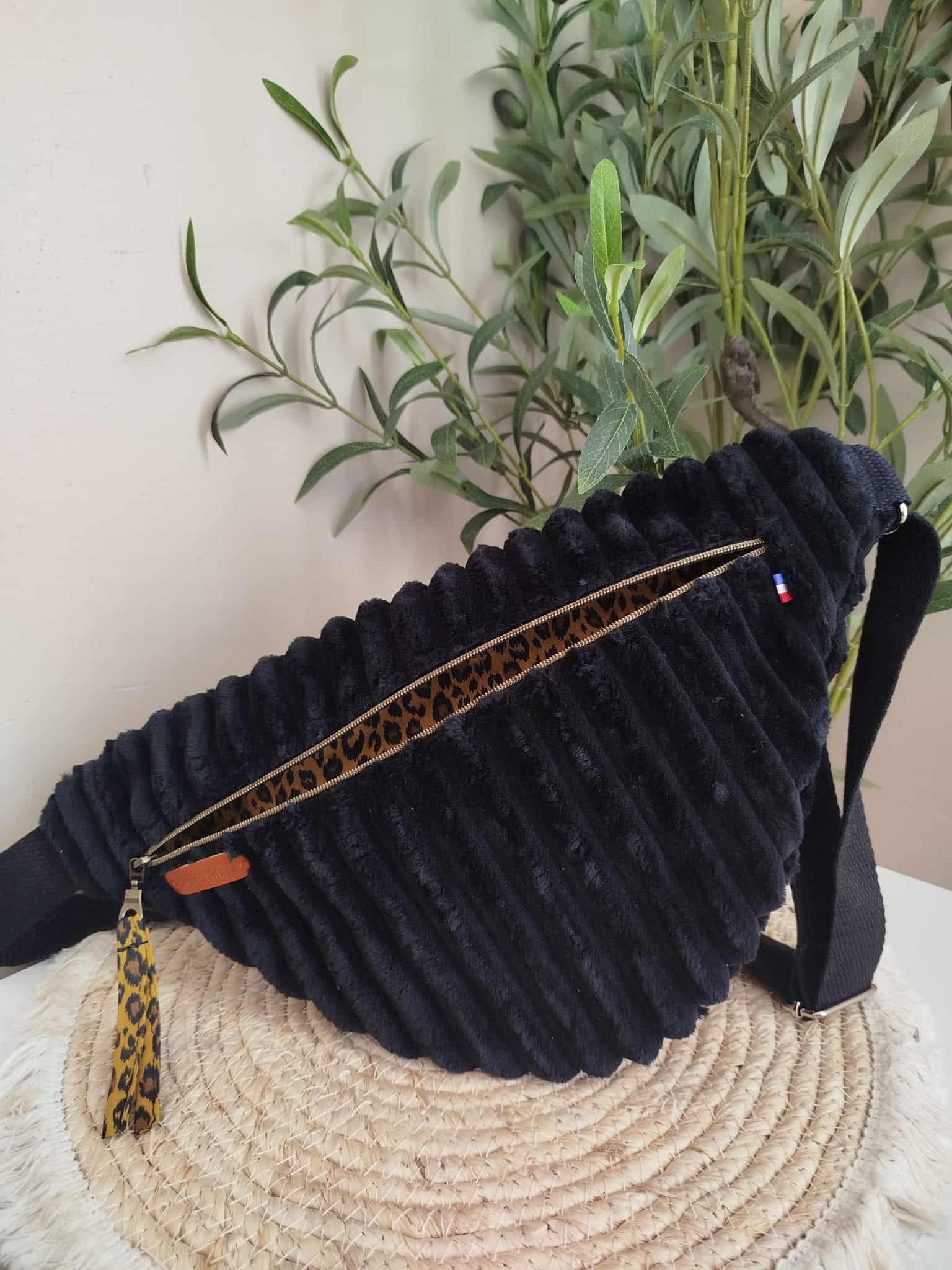 Optez pour ce sac banane noir en velours grosses côtes, un accessoire tendance, pratique et entièrement fait main. Confectionné dans mon atelier en France, ce sac banane allie style, confort et grande capacité de rangement.