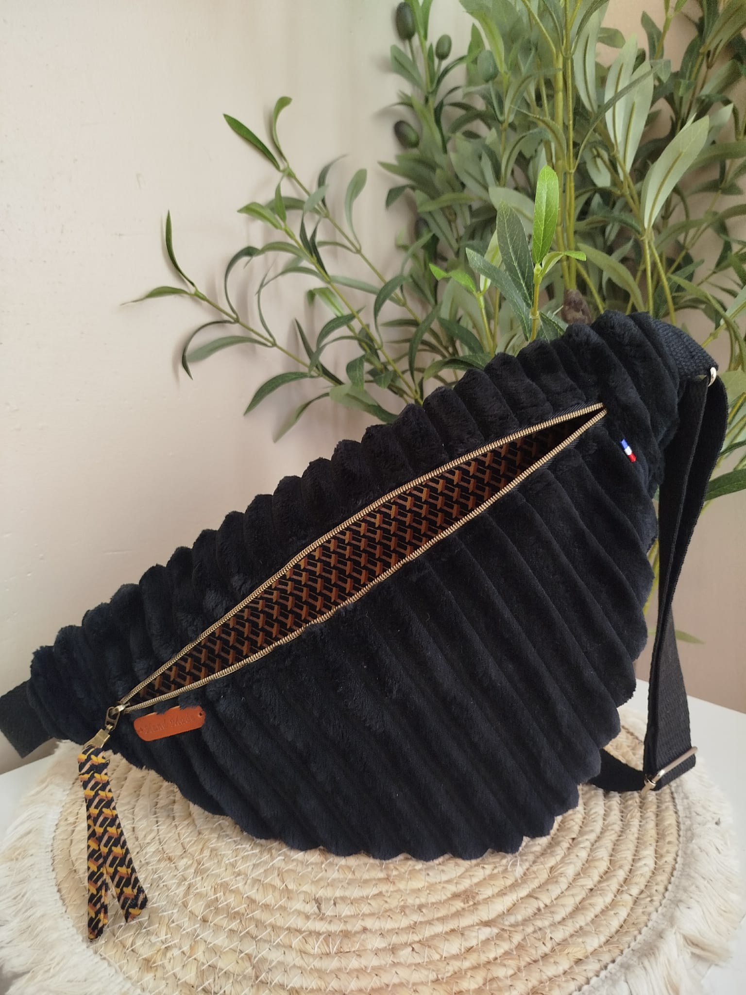 Sac banane noir en velours – Grand modèle artisanal, fait main en France