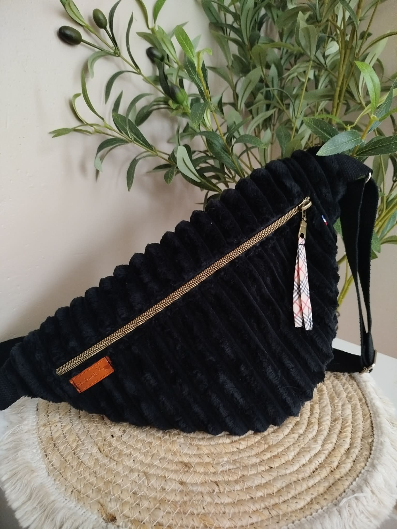 Craquez pour ce sac banane noir en velours grosses côtes, un accessoire tendance, pratique et entièrement fabriqué à la main. Confectionné dans mon atelier en France, ce sac banane artisanal combine élégance, confort et grand espace de rangement pour vous accompagner au quotidien.