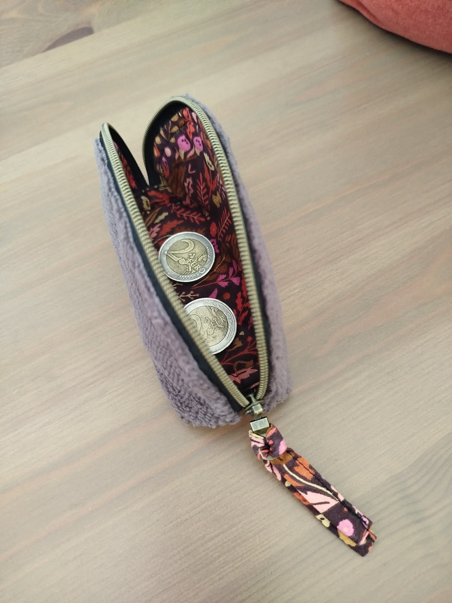 Succombez à ce joli porte-monnaie, subtilement doublé d’un magnifique coton fleuri fuschia.