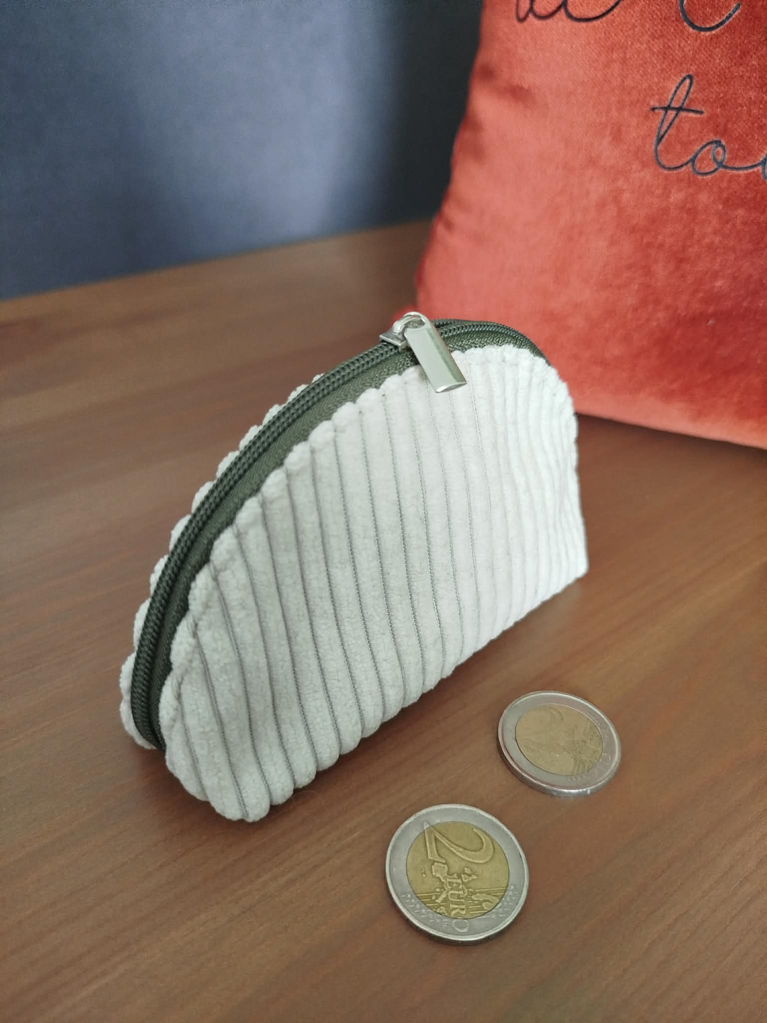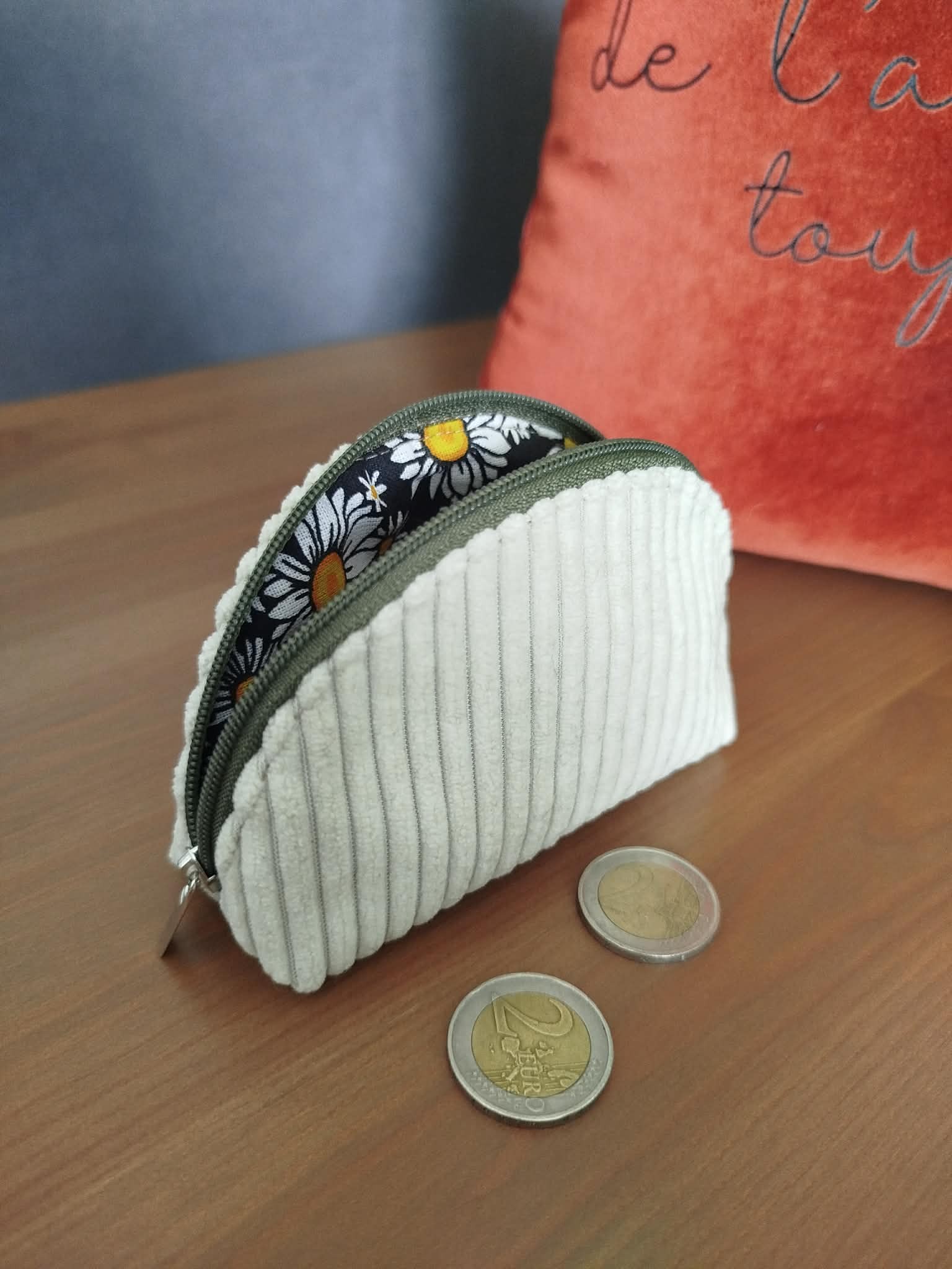 Porte-monnaie - Trousse - Bourse pour le rangement des pièces de monnaie / cartes en velours côtelé "écru".