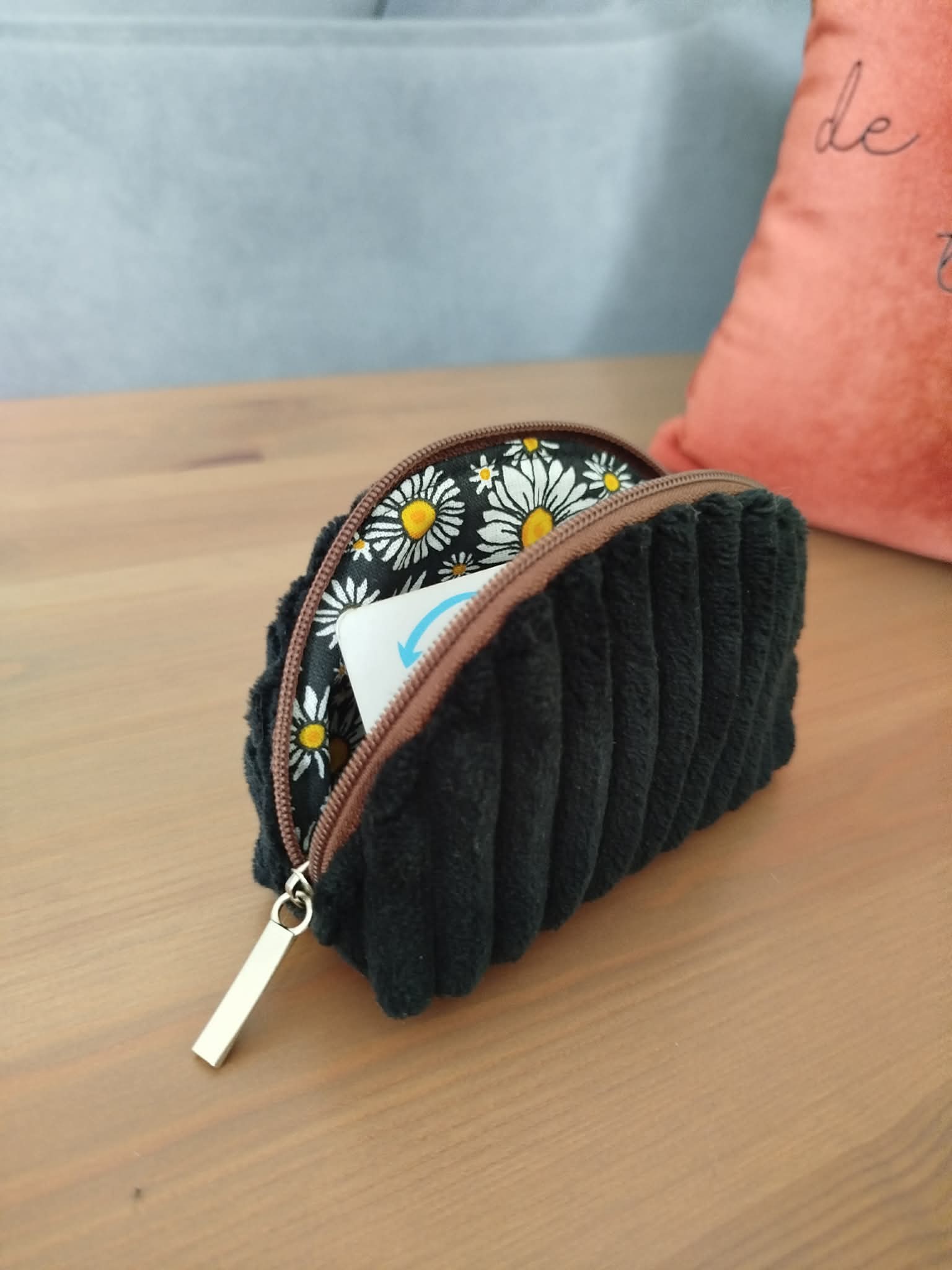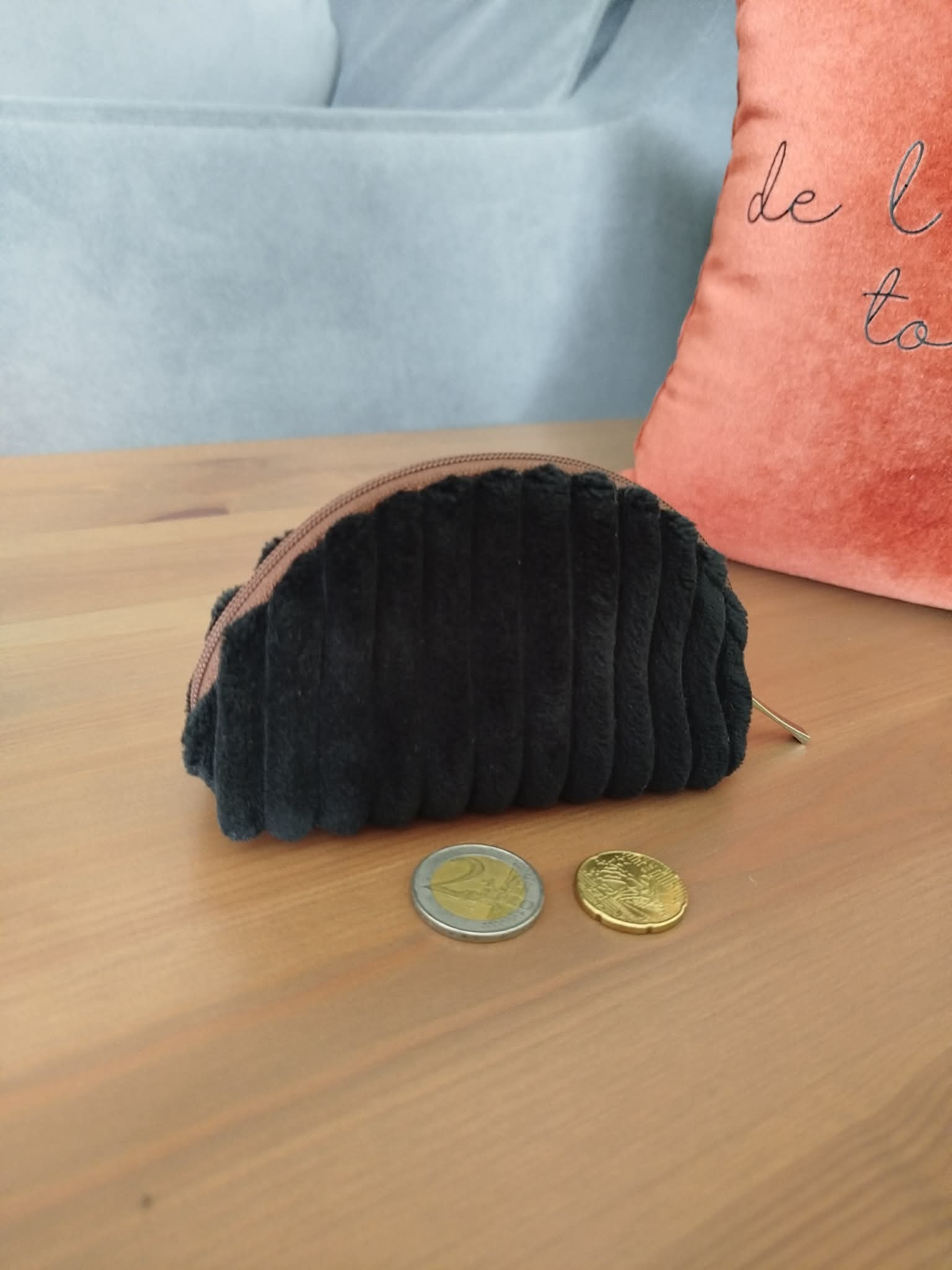 Porte-monnaie - Trousse - Bourse pour le rangement des pièces de monnaie / cartes en velours grosses côtes très doux "noir".