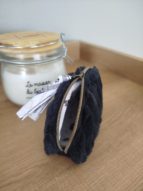Porte-monnaie - Trousse - Bourse pour le rangement des pièces de monnaie / cartes en velours grosses côtes très doux "noir".