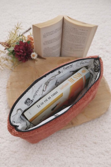 Fabriquée en éponge de bambou 100 % biologique coloris "terracotta", cette pochette protège vos livres tout en douceur. Son intérieur est doublé d’un coton imprimé "notes de musique" pour une touche originale et raffinée.