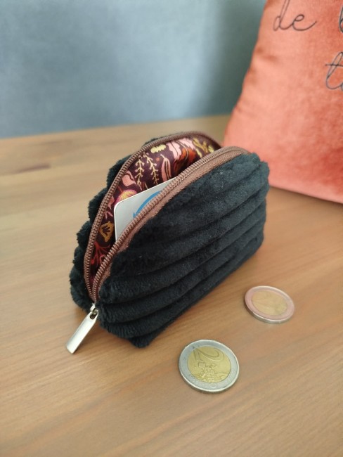 Porte-monnaie / pochette bourse pièces carte tendance velours côtelé noir - Fait main - Made in France